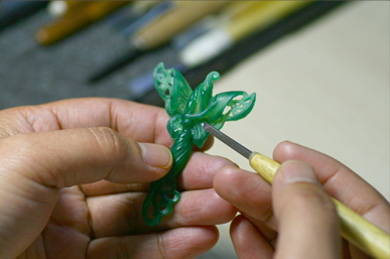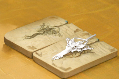 • 這時,雕好的蠟版還需要澆鑄成銀版,進一步修改、完善,才能進行  壓膠膜、開模等下一步制作。
