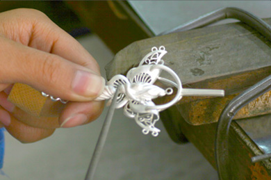 •            起版師傅進一步修整銀版,使細節部位更加干凈完美。