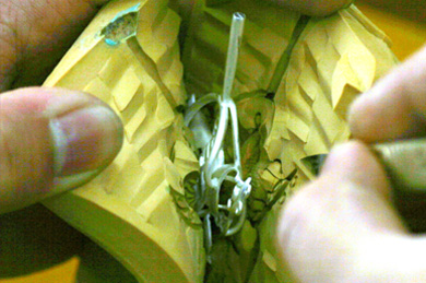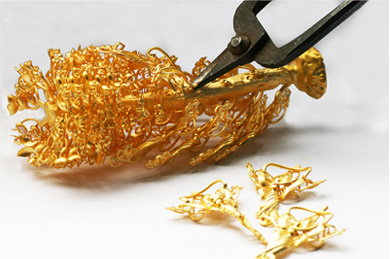 • 沖洗掉石膏,取出澆鑄好的黃金毛胚件“金樹”