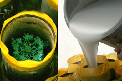 成金水注入石膏模內澆鑄成形